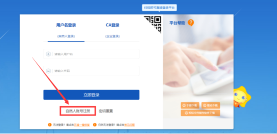 (1)若无自然人账户,需先进行新注册操作(如下图),选择“自然人账号注册”。