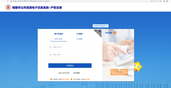 登录铜陵市公共资源产权交易系统http://60.173.1.248:8181/TPBidderNew/memberLoginforCQ