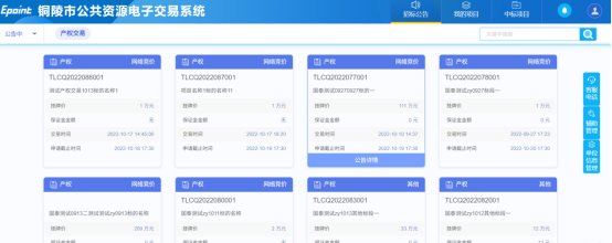 完成登录操作以后,进入系统选择右侧“招标公告”可以查看到当前正在进行中的产权交易项目,查找需要参与的项目;