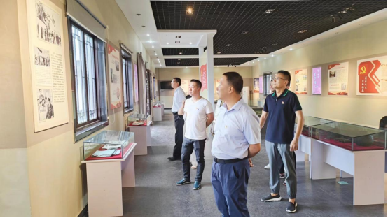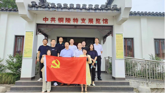 在义安区西联镇钱湾村中共铜陵特支遗址,全体党员通过观看铜陵特支历史图片、文物和历史资料等,详细了解到,1931年初,在铜陵县汀洲钱家湾章啸衡家中正式成立了中共铜陵特支,是中国共产党在铜陵境内建立的第一个党支部,由此点燃了铜陵地区的燎原星火,书写了党领导我们铜陵人民进行反帝反封建革命斗争的新篇章,是我们铜陵革命史上红色的起点。